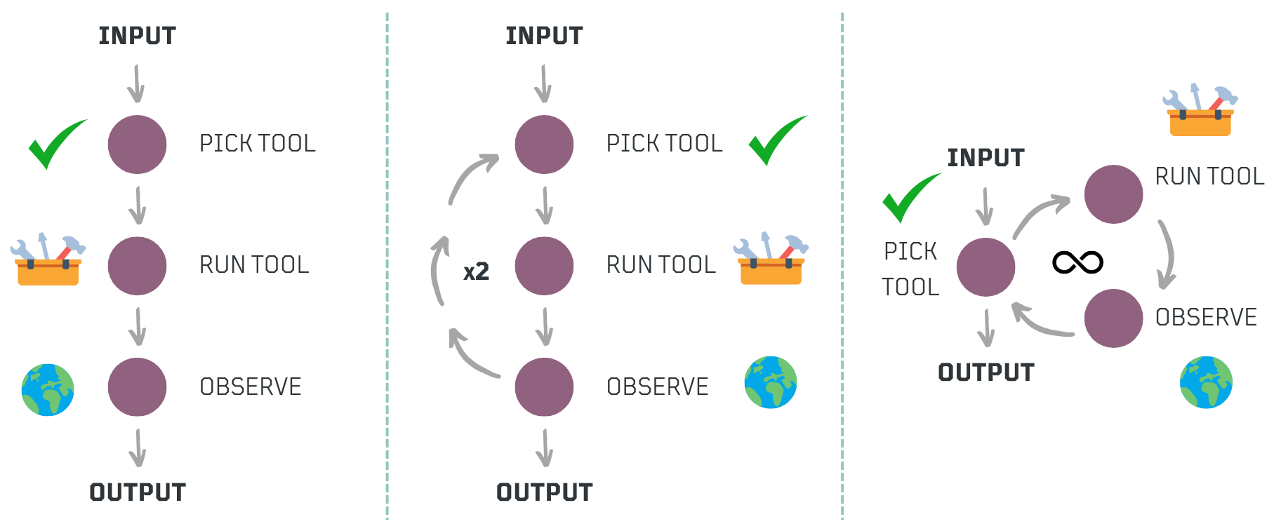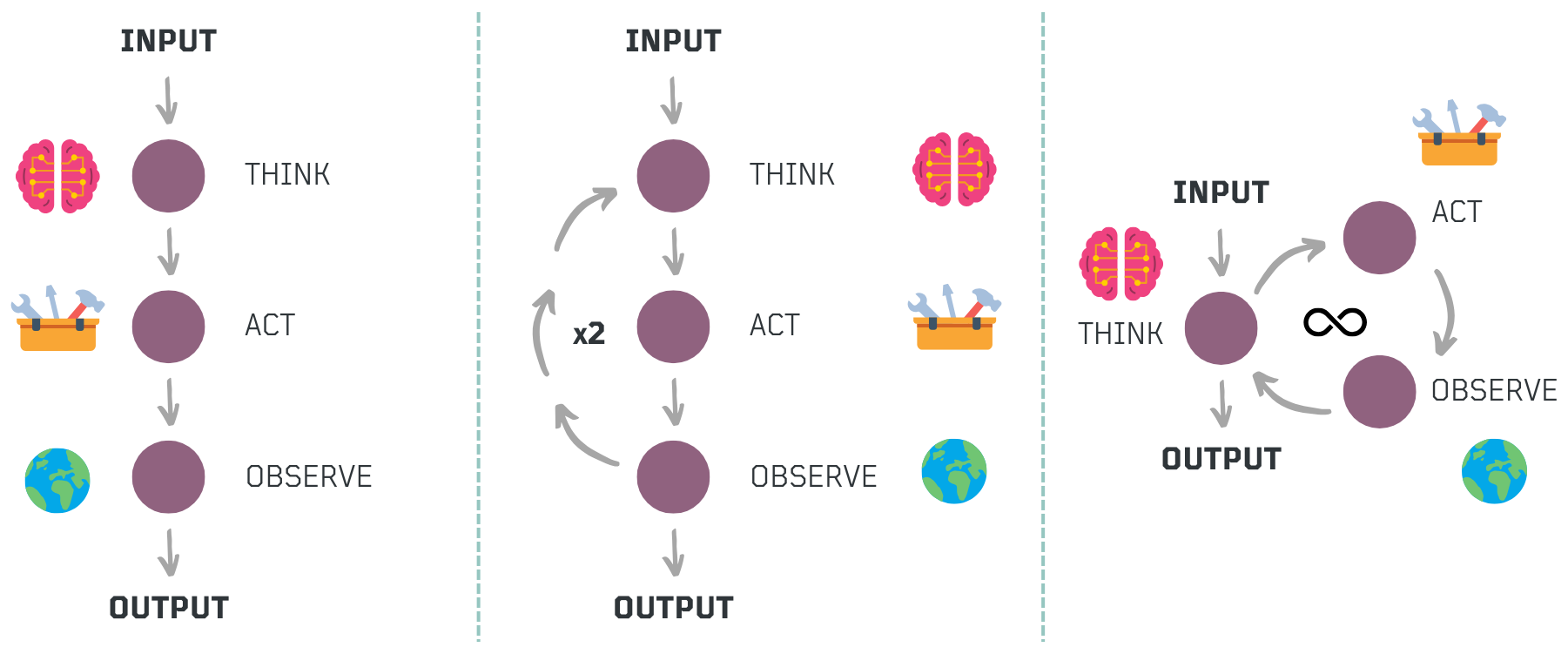 While workflows follow a structured sequence of predefined steps, agentic workflows extend this concept by integrating structured execution with reasoning loops, enabling adaptive decision-making. Even well-known prompting strategies like ReAct (Reason + Act) follow a structured process where an agent thinks, acts, observes, and repeats the cycle. However, what makes a workflow agentic is not just the existence of a loop but the flexibility in determining how many iterations are needed, what tools to use at each step, and when to stop.